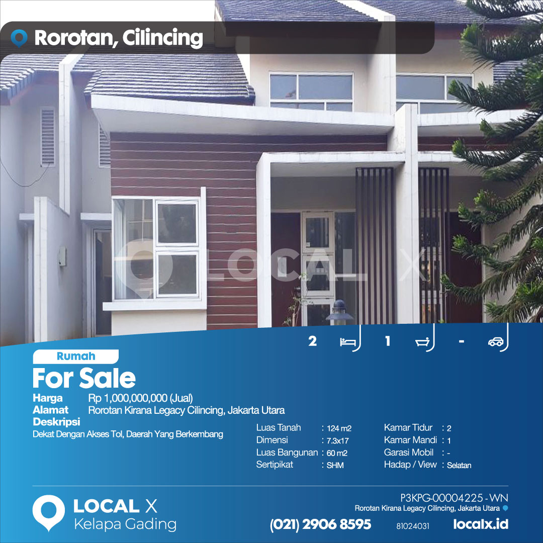 P3KPG-00004225-WN-J (For Sale – Jual) Rumah Rorotan Kirana Legacy Cilincing, Jakarta Utara