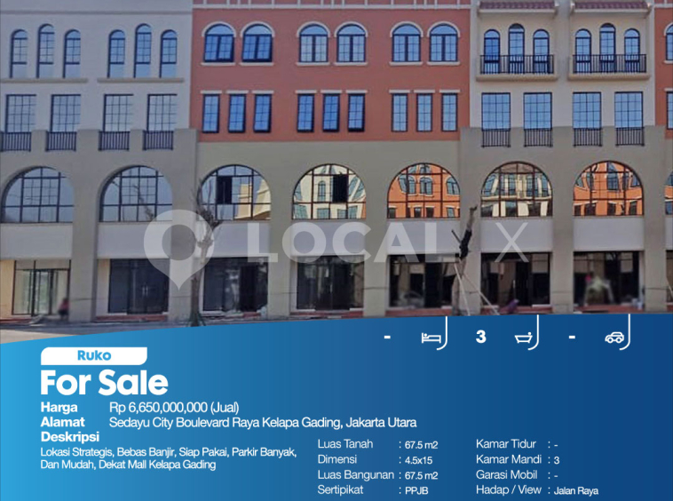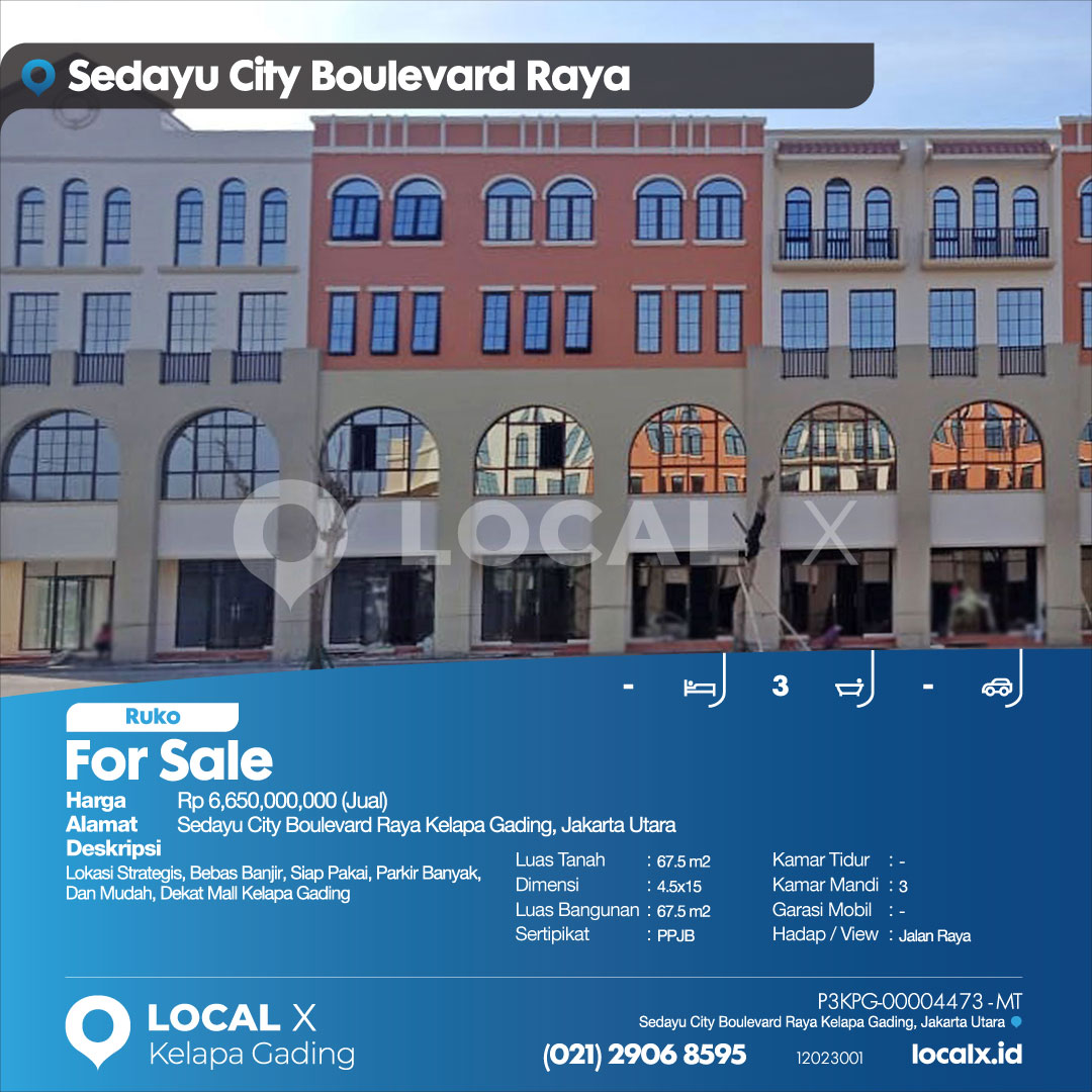 P3KPG-00004473-MT-J (For Sale – Jual) Ruko Sedayu City Boulevard Raya Kelapa Gading, Jakarta Utara