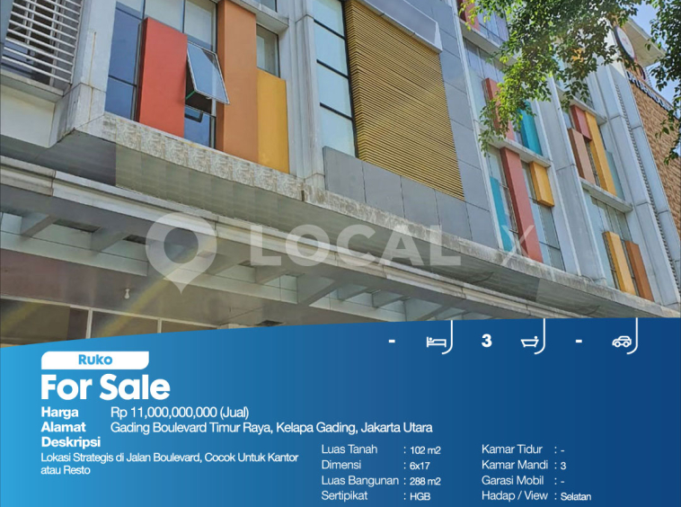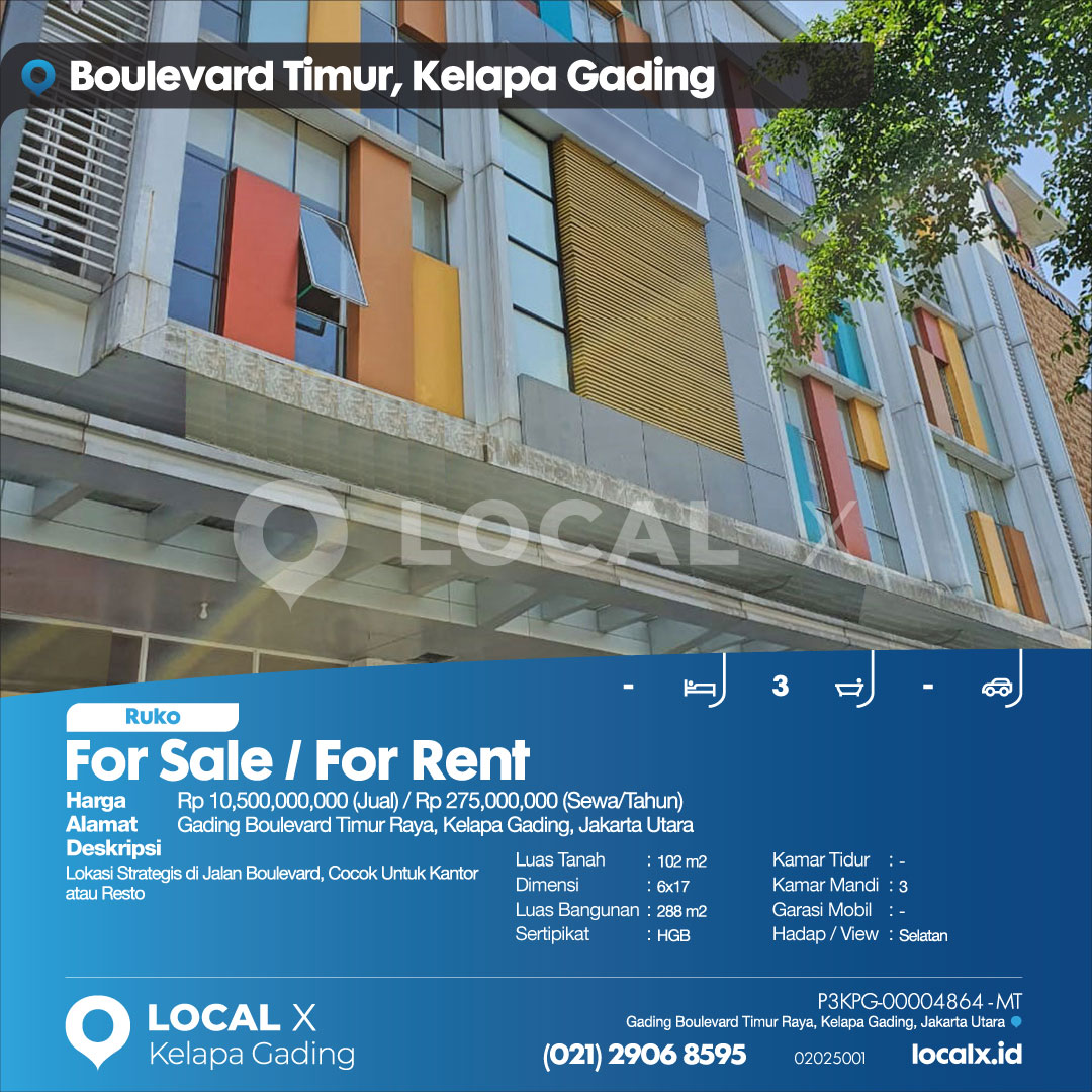 Lokasi Strategis di Jalan Boulevard, Cocok Untuk Kantor atau Resto