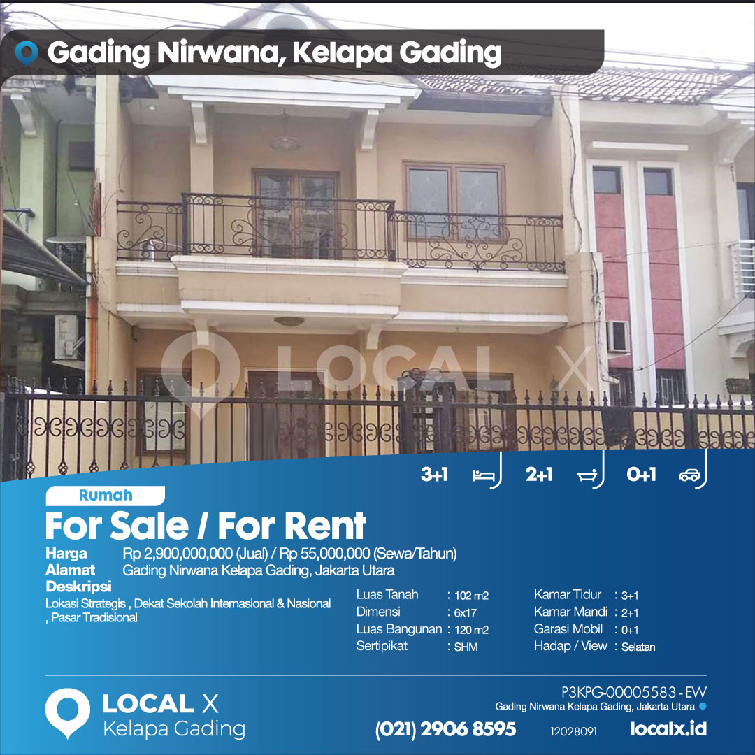 P3KPG-00005583-EW-J (For Sale – Jual) Rumah Gading Nirwana Kelapa Gading, Jakarta Utara