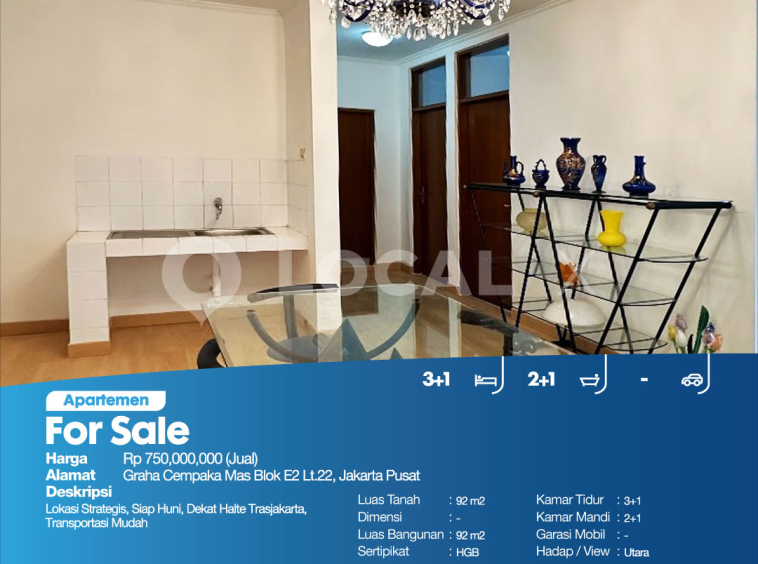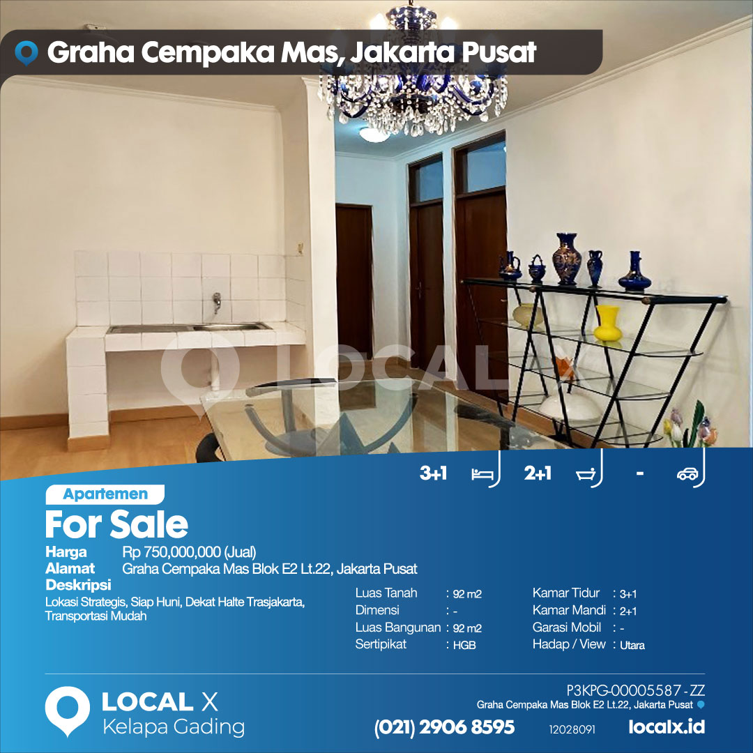 P3KPG-00005587-ZZ-J (For Sale – Jual) Apartemen Graha Cempaka Mas Blok E2 Lt.22, Jakarta Pusat