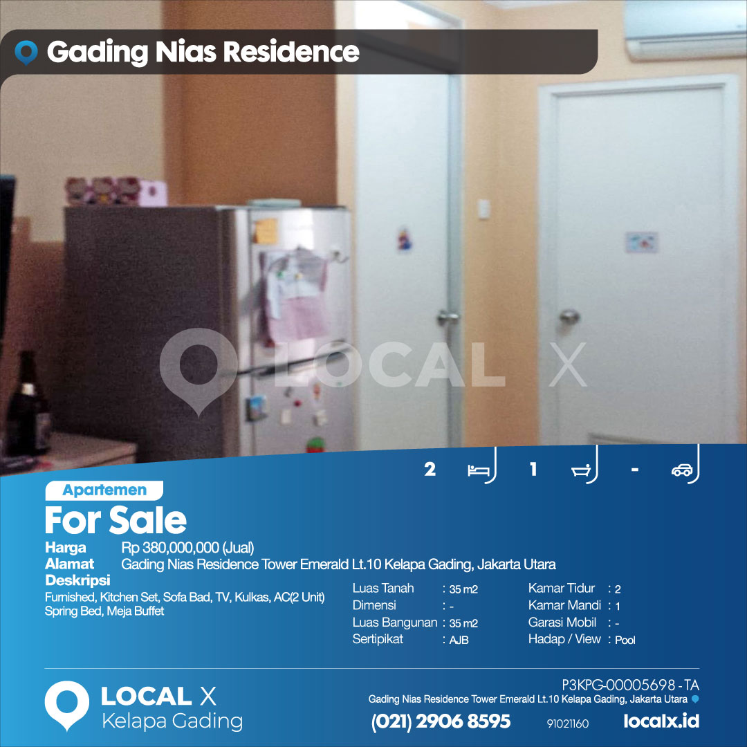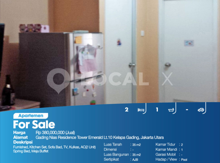 Furnished, Kitchen Set, Sofa Bad, TV, Kulkas, AC(2 Unit) Spring Bed, Meja Buffet