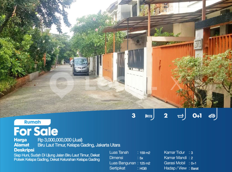 Siap Huni, Sudah Di Ujung Jalan Biru Laut Timur, Dekat Polsek Kelapa Gading, Dekat Kelurahan Kelapa Gading