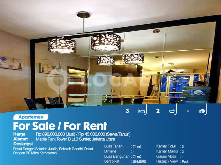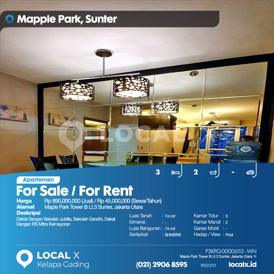 P3KPG-00006113-WN-J (For Sale – Jual) Apartemen Maple Park Tower B Lt.3 Sunter, Jakarta Utara