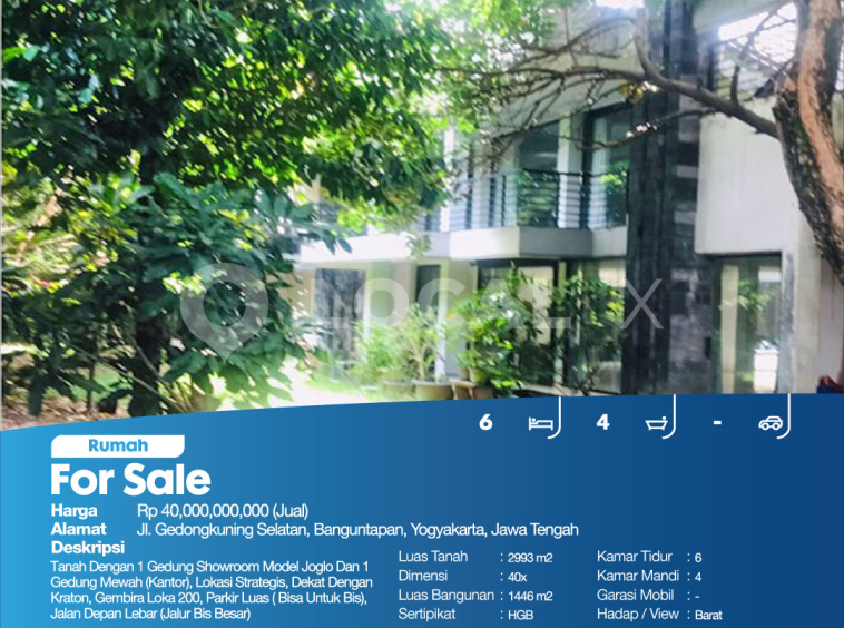 Tanah Dengan 1 Gedung Showroom Model Joglo Dan 1 Gedung Mewah (Kantor), Lokasi Strategis, Dekat Dengan Kraton, Gembira Loka 200, Parkir Luas ( Bisa Untuk Bis), Jalan Depan Lebar (Jalur Bis Besar)