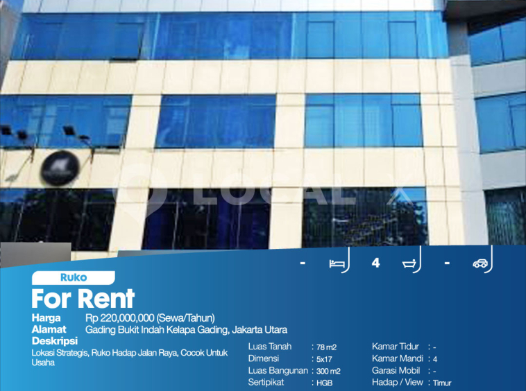 P3KPG-00006247-MT-S (For Rent – Sewa) Ruko Gading Bukit Indah Kelapa Gading, Jakarta Utara
