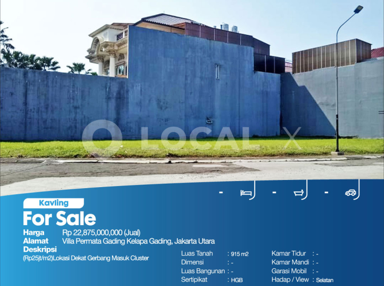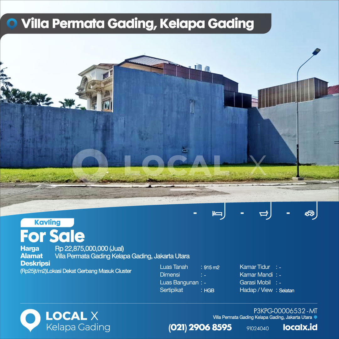 P3KPG-00006532-MT-J (For Sale – Jual) Kavling Tanah Villa Permata Gading Kelapa Gading, Jakarta Utara