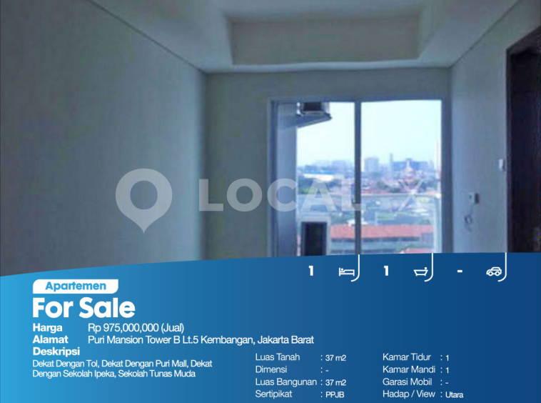 P3KPG-00006576-JW-J (For Sale – Jual) Apartemen Puri Mansion Tower B Lt.5 Kembangan, Jakarta Barat