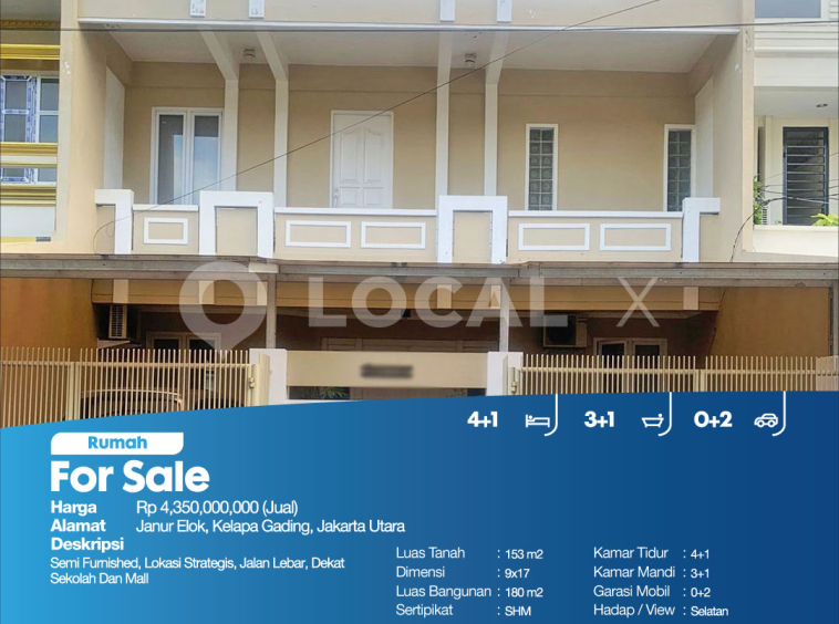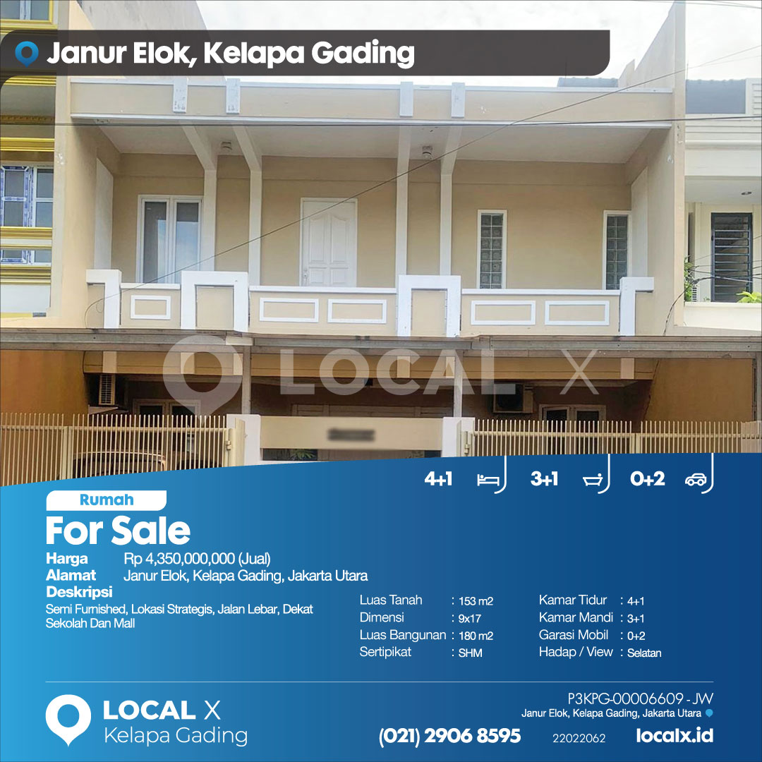 P3KPG-00006609-JW-J (For Sale – Jual) Rumah Janur Elok, Kelapa Gading, Jakarta Utara