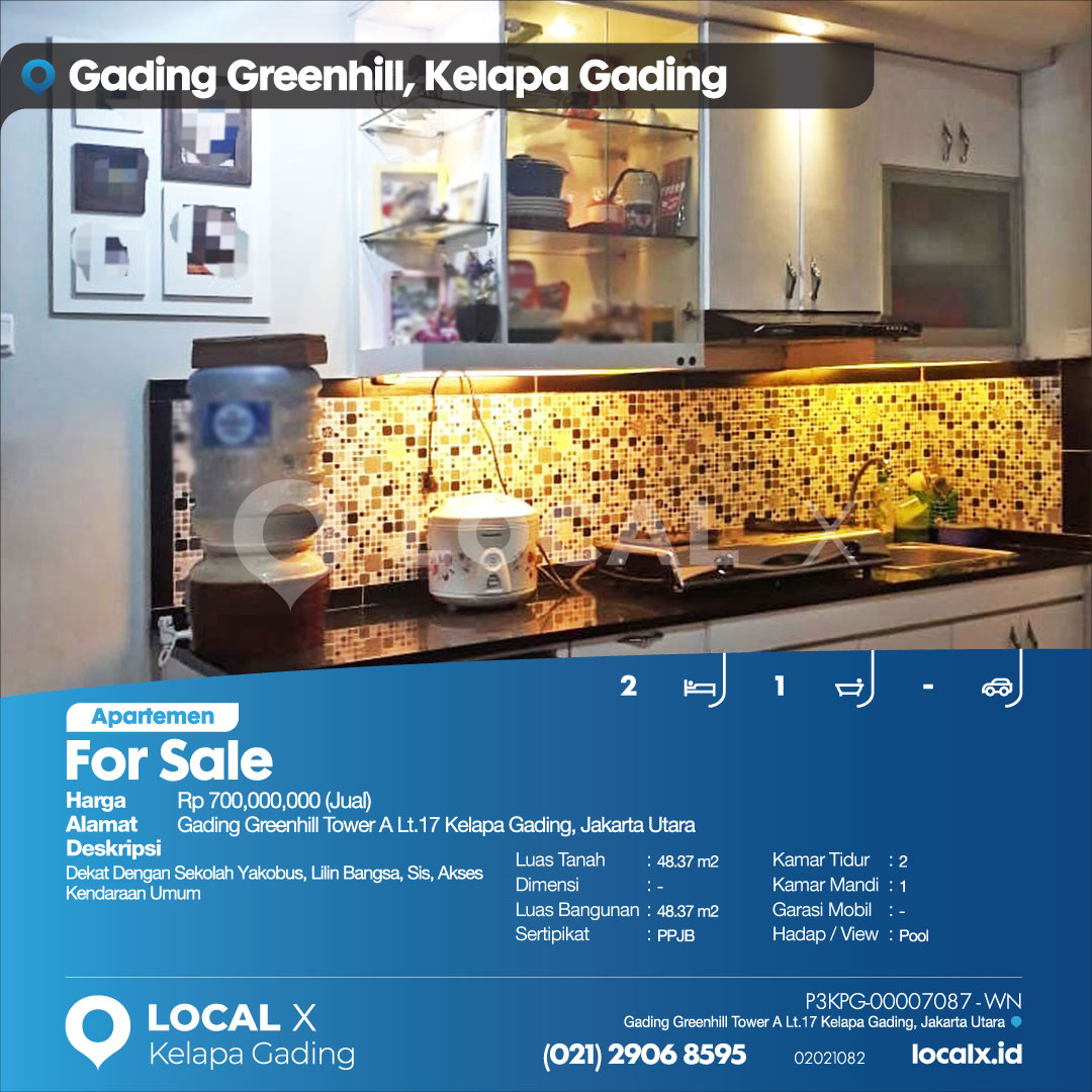 P3KPG-00007087-WN-J (For Sale – Jual) Apartemen Gading Greenhill Tower A Lt.17 Kelapa Gading, Jakarta Utara