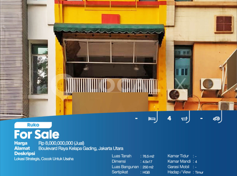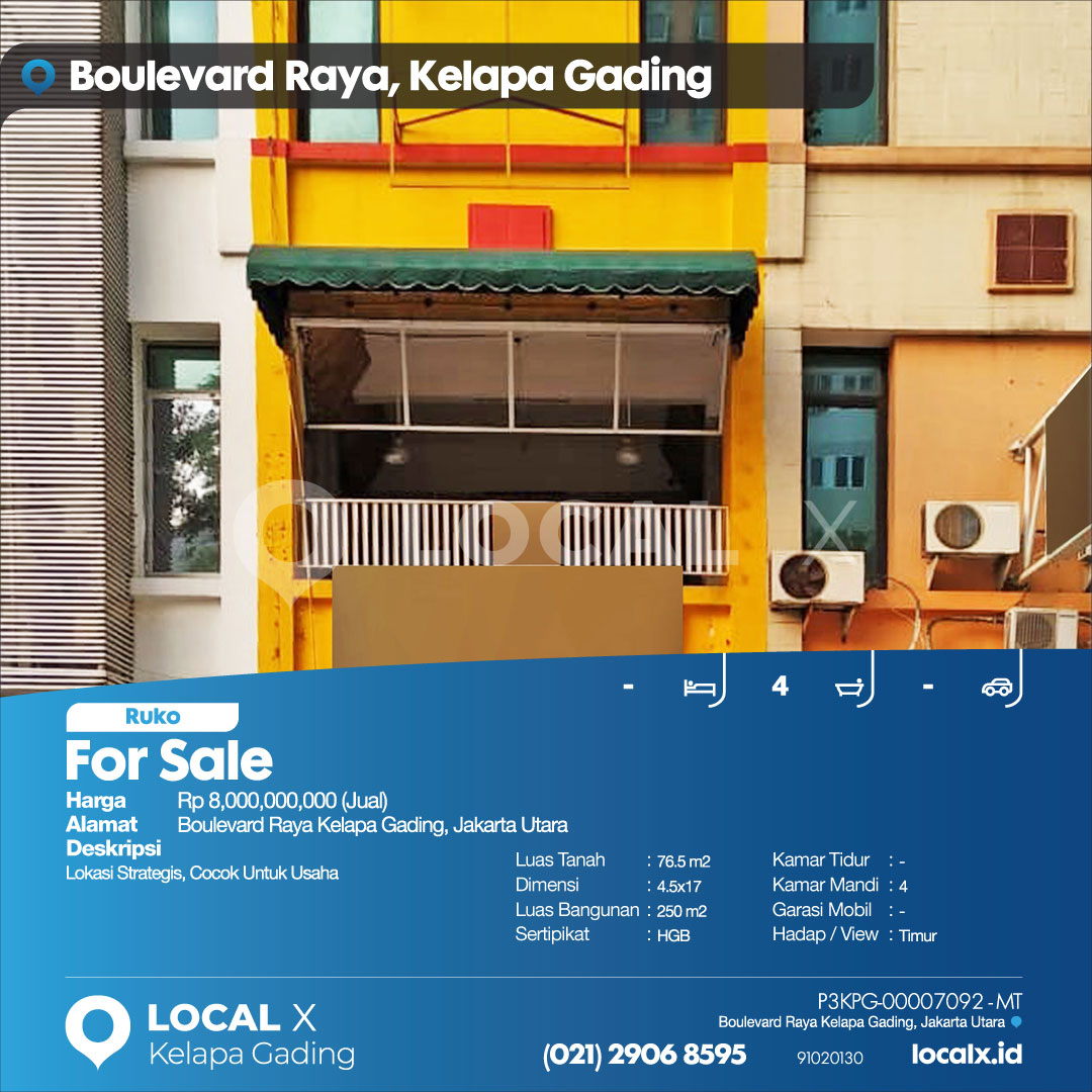 P3KPG-00007092-MT-J (For Sale – Jual) Ruko Boulevard Raya Kelapa Gading, Jakarta Utara
