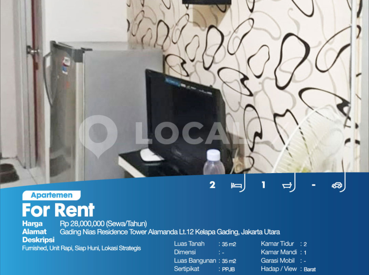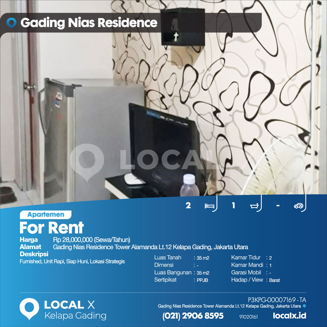 • Address Gading Nias Residence Tower Alamanda Lt.12 Kelapa Gading, Jakarta Utara