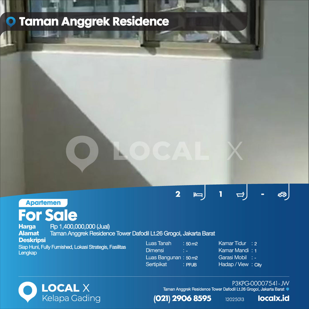 • Address Taman Anggrek Residence Tower Dafodil Lt.26 Grogol, Jakarta Barat