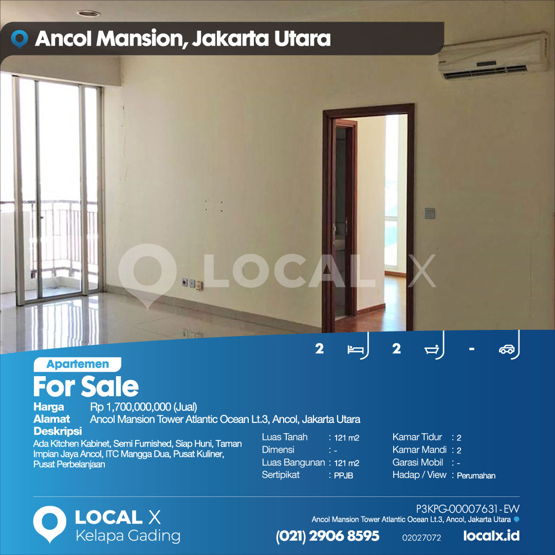 • Address Ancol Mansion Tower Atlantic Ocean Lt.3, Ancol, Jakarta Utara