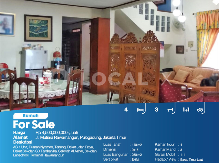 AC 1 Unit, Rumah Nyaman, Tenang, Dekat Jalan Raya, Dekat Sekolah SD Tarakanika, Sekolah Al Azhar, Sekolah Labschool, Terminal Rawamangun