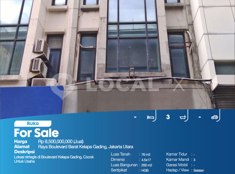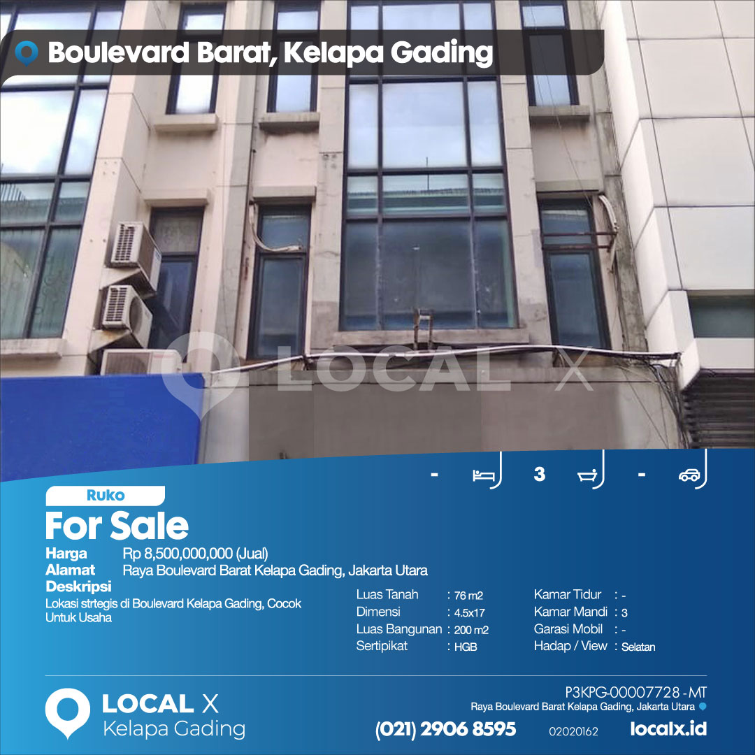 Lokasi strtegis di Boulevard Kelapa Gading, Cocok Untuk Usaha