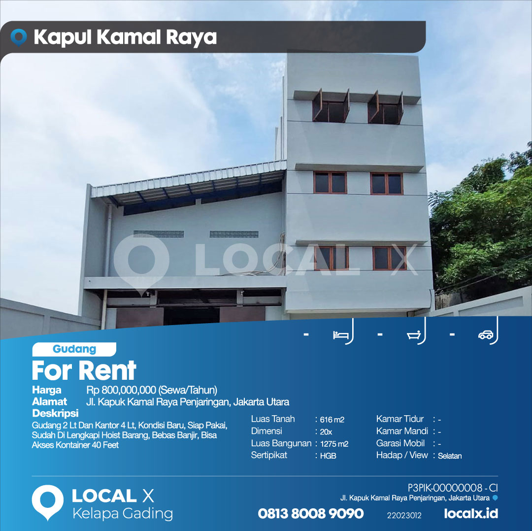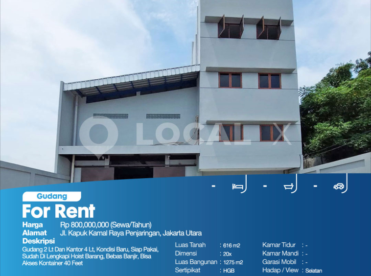 Gudang 2 Lt Dan Kantor 4 Lt, Kondisi Baru, Siap Pakai, Sudah Di Lengkapi Hoist Barang, Bebas Banjir, Bisa Akses Kontainer 40 Feet