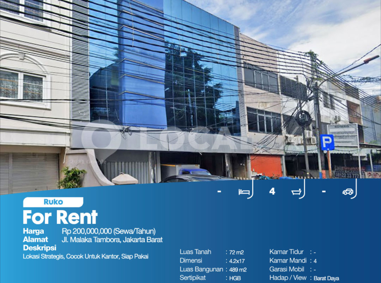 P3PIK-00000013-CI-S (For Rent – Sewa) Ruko Jl. Malaka Tambora, Jakarta Barat