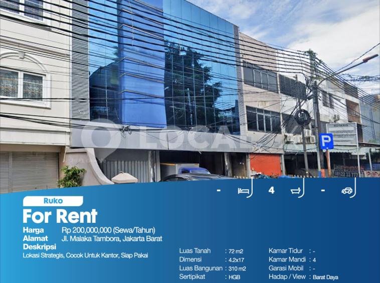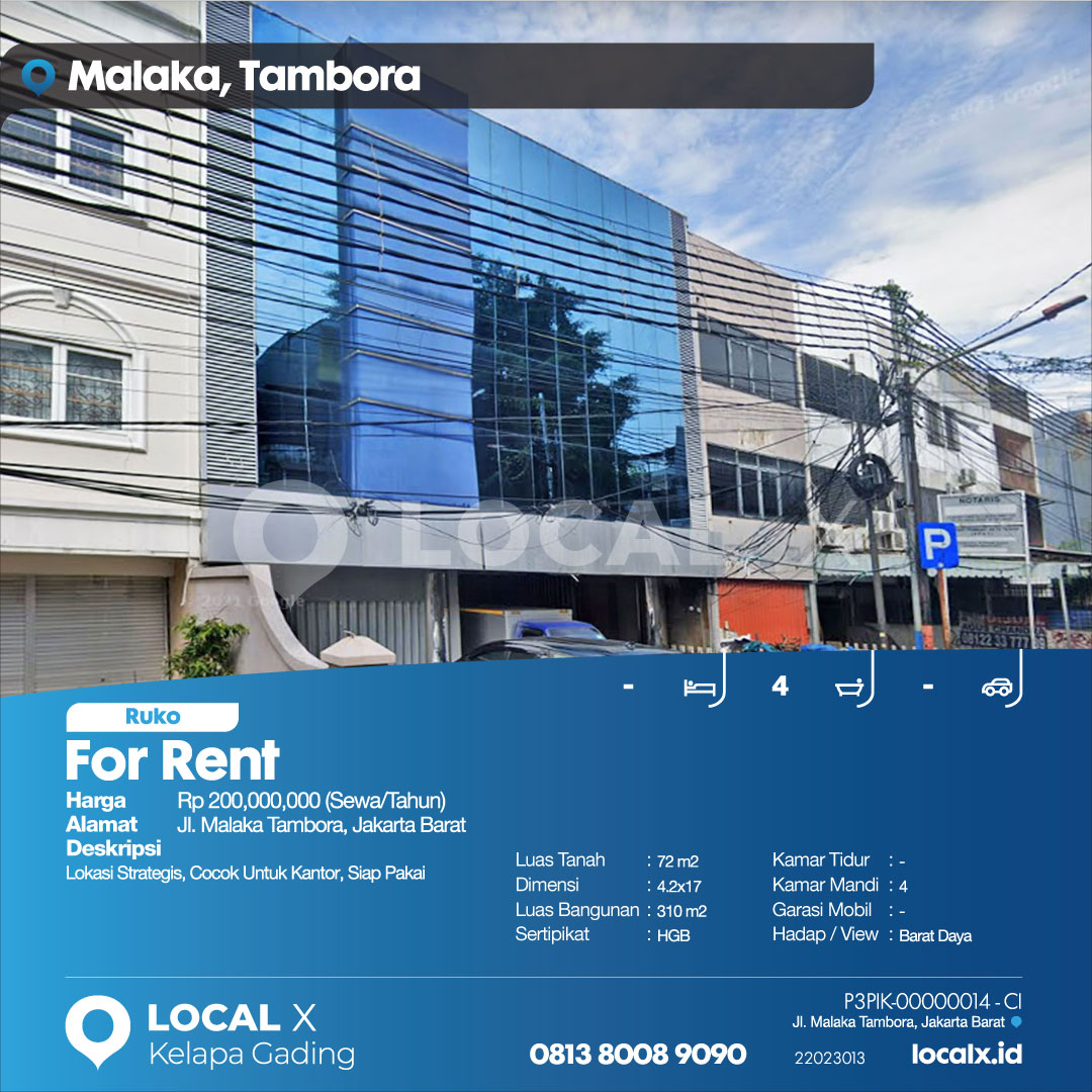 P3PIK-00000014-CI-S (For Rent – Sewa) Ruko Jl. Malaka Tambora, Jakarta Barat