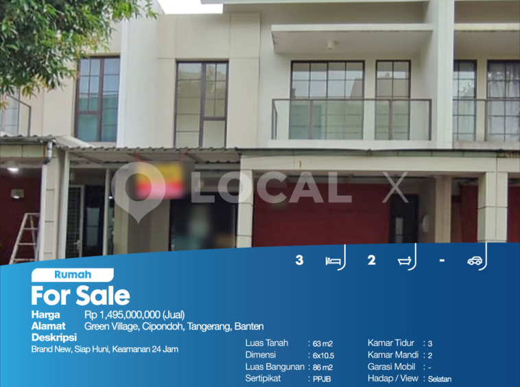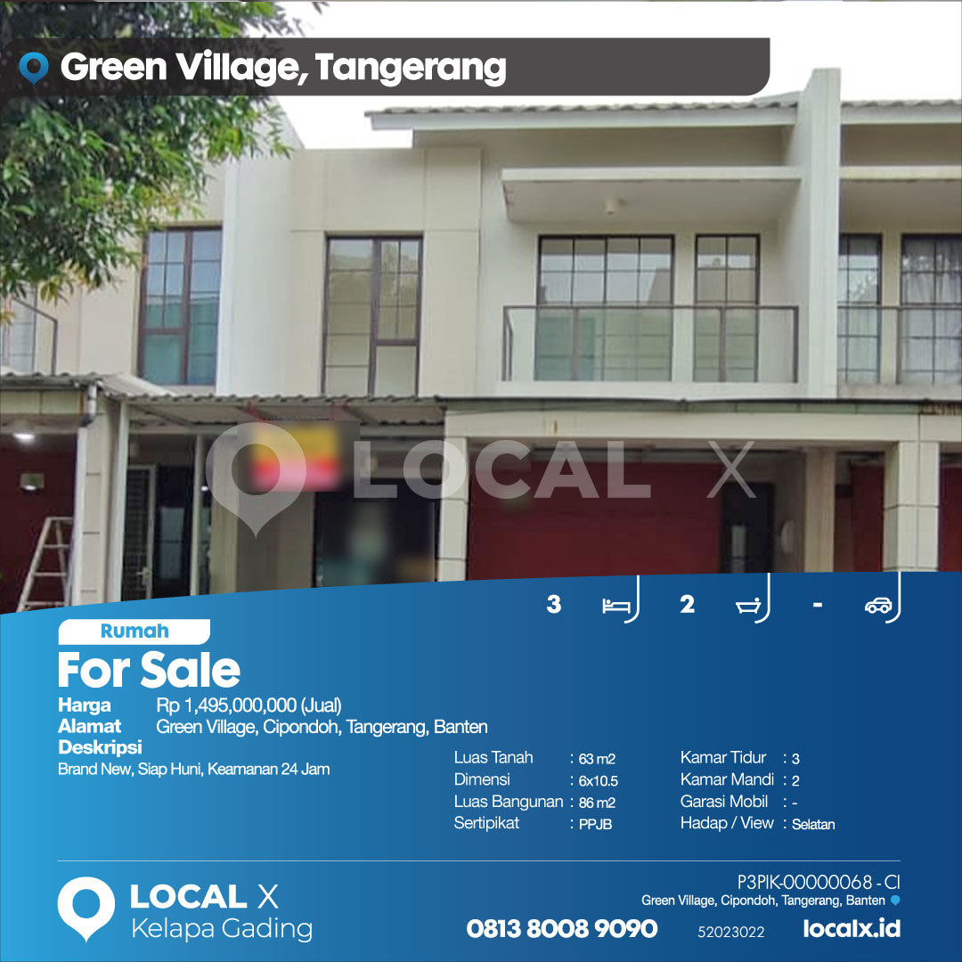 P3PIK-00000068-CI-J (For Sale – Jual) Rumah Green Village, Cipondoh, Tangerang, Banten
