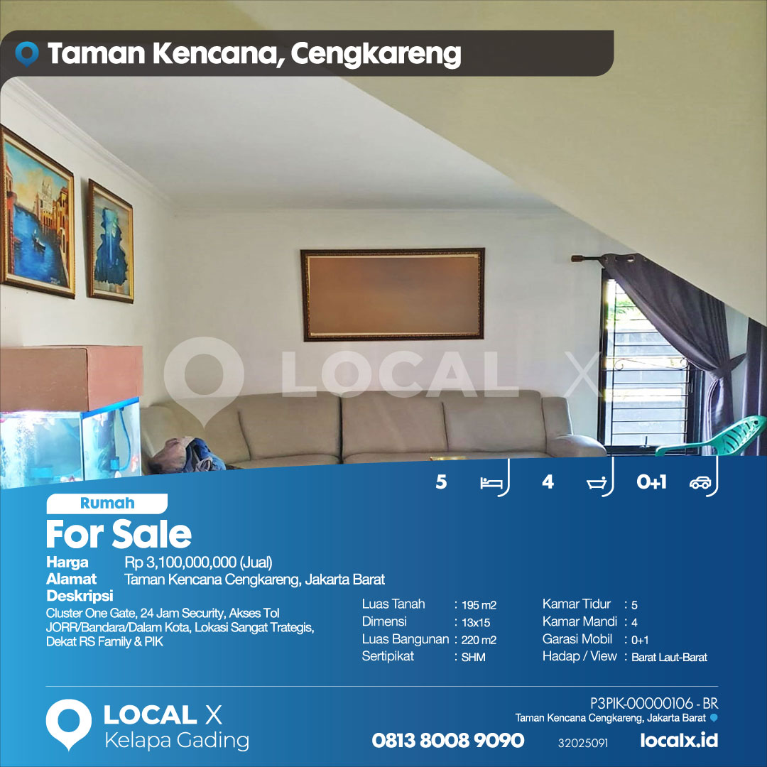 P3PIK-00000106-BR-J (For Sale – Jual) Rumah Taman Kencana Cengkareng, Jakarta Barat