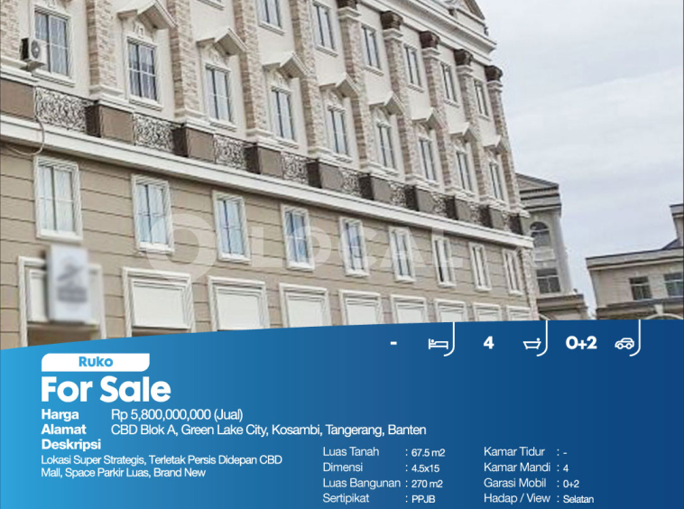 Lokasi Super Strategis, Terletak Persis Didepan CBD Mall, Space Parkir Luas, Brand New